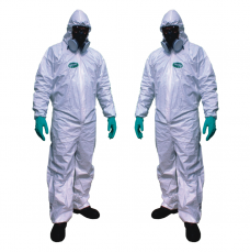 Vestimenta de segurança, tipo macacão, confeccionada em polipropileno (não tecido) laminado, com filme de polietileno, fechamento frontal com zíper e pala de proteção, elástico no capuz, punho e tornozelos. Para proteção do crânio, pescoço, tronco, membros superiores e inferiores do usuário contra risco de de origem química.